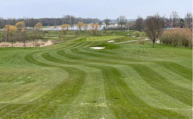 Der Clou des Platzes ist jedoch die 9-Loch-Anlage, die im September 2009 fertiggestellt und den Mitgliedern übergeben wurde. Es handelt sich um drei Bahnen in flacher Topographie auf dem Niveau des Par-3 Kurses. Zum vierten Abschlag müssen die Spieler*innen, ungewöhnlich für diese Gegend, einen Höhenunterschied von bis zu 17m überwinden. Denn es folgen sechs Löcher, die auf einer ehemaligen Mülldeponie gebaut wurden. Ein besonderer Clou der Anlage. Er erlaubt es, von erhöhten Teeboxen abzuschlagen, in Täler zu spielen oder blind oberhalb der Bahn gelegene Grüns anzugreifen. Diese Art des „Untergrundes“ findet man auf niederländischen Golfplätzen häufiger, wie uns der Clubpräsident im Gespräch verrät.
