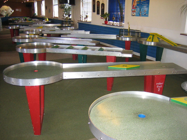 Pit-Pat gibt es bereits seit 1984. Seither wurde vor allem in Europa so manche Anlage gebaut, sowohl outdoor als auch überdacht. Wie beim Minigolf umfasst ein Spiel 18 Bahnen. Diese Bahnen sind allerdings eher Tische wie beim Billard. Alle Tische sind geprägt von jeweils eigenen Hindernissen. Der Ball wird jedoch nicht geschlagen, sondern wie beim Billard mit einem Queue gestoßen.